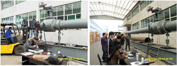中国伯特利阀门集团使用 TZT3826 静态应变测试分析系统对其新设计的管道阀门的稳定性进行测试,测试内容包括应变应力、拉力、液压、位移、扭矩等。选用TST3826(60测点),所有应变花、传感器全部一次性接入,方便、快捷地完成了试验。