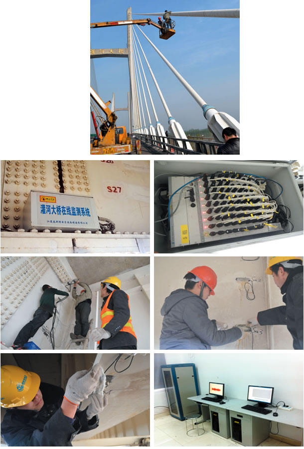 灌河大桥是江苏省沿海高速(G15)连盐段技术最为复杂的工程之一,位于连云港市和盐城市交界处,横跨灌河。在建成通车后,犹豫氧化、腐蚀、或老化等因素,以及长期在静载和活载的作用下遭受损失,大桥强度和刚度会随着时间的增加而降低,传统的人工桥梁检查程序和设施在这座大桥的大部分位置均难以直接靠近检查,健康监测系统通过系统地收集桥梁技术数据,建立桥梁数据库,应用计算机管理系统更好的维护管理好桥梁,了解桥梁实际受力状态,确定桥梁各部位损伤和缺陷程度及实际承载能力,指导桥梁养护、加固与维修工作。