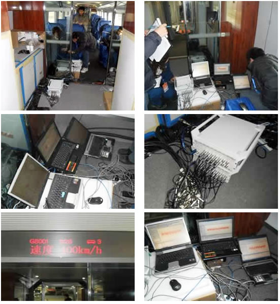 作为我国成立以来一次建设里程最长、投资最大、标准最高的高速铁路,京沪高速铁路于 2008 年 4 月 18 日开工,从北京南站出发终止于上海虹桥站,总长度 1318KM ,该项目主要测试 A380 列车在徐州东站到蚌埠南站的往返试车运行过程中的车体各部分的振动情况,并完成对车体的模态分析。公司与西南交大合作,使用 TZT5912 ( 64 测点)圆满完成了测试任务。
