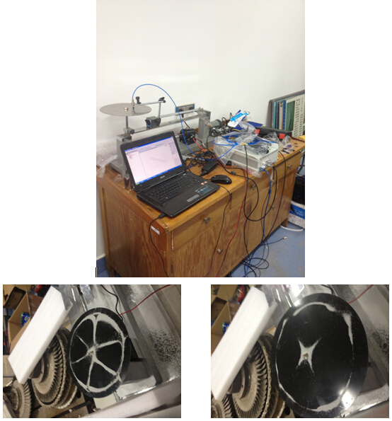 此实验为中国民航大学的教学实验,实验目的是通过激振器对沙盘进行扫频信号激励,然后在固有频率出得出沙盘的固有振型