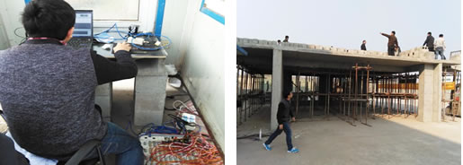 一、项目简介 哈尔滨工业大学土木工程学院大跨度双向叠合板足尺静载试验 二、测试设备 TZT3826E静态应变测试分析系统 1台 TZTDAS信号测试分析系统软件 笔记本电脑1台,应变片若干,位移计若干 三、试验过程 在钢筋、墙片表面预设测点安装应变片,在顶板底部安装顶杆式位移计,连接到应变测试仪,通过对墙片加载测试各测点应变值,位移值 四、现场照片