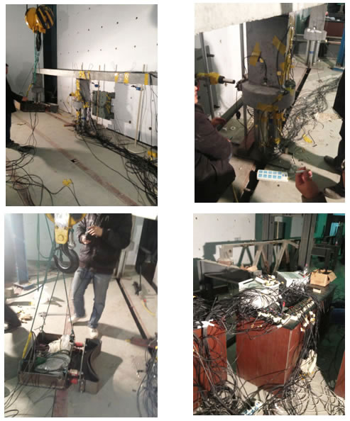 桥梁撞击前测量桥的模态并完成静加载实验,撞击实验共分3批,分别是撞击承台、横梁以及撞击和梁相连接的另一个梁测量承台和横梁的应变、加速度和位移,每批次测三组撞击数据,分别以不同的质量块去撞击。撞击完成之后再测量桥的模态