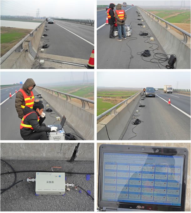 公司应京沪高速沭阳段设计方和施工方邀请,分别与2011年、2013年两次参与京沪高速沐阳段新沂河大桥加固前后的桥梁模态试验。两次试验分别采用有线、无线TZT5926进行试验。