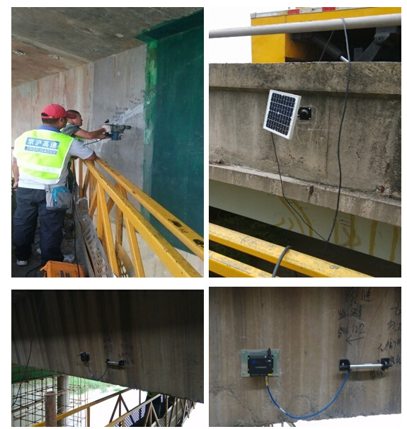 京沪高速江苏段具有车流量大、重型货车较多等特点,因此京沪高速上的很多中小型混凝土桥梁都不可避免的产生损伤。此项目就是对江苏段上的典型桥梁实施裂缝监测,通过对裂缝的长时监测来判断桥梁的损伤情况并提前预警。