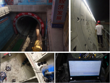 中铁十七局对太原轨道交通2号线进行盾构机壳体振动测试,由于采集设备需要放置在盾构机内部,对仪器的抗震性能要求较高,我公司的TST5916坚固型动态信号测试分析系统专为恶劣环境下数据采集设计,配合126磁电式速度传感器,监测盾构机掘进过程中壳体各个方向的振动