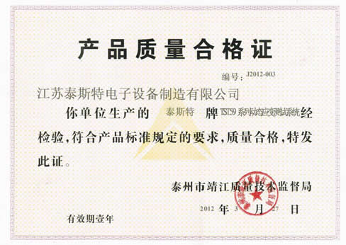 由于公司更名为江苏泰之特物联科技股份有限公司,所以需要对计量许可证以及计量合格确认证书进行更改。在更改之际,质监部门再次对我司仪器进行了一次全面检测,检测结果符合国家行业标准,同时对公司产品出具了产品质量合格证书。公司也将继续严格按照国家相关行业标准进行仪器的生产和制造,确保每台仪器精度和质量。公司也会一如既往的为广大用户提供优质的产品和服务。
