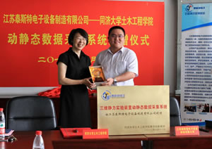 | 双方经过一系列友好洽谈后达成了技术合作共识,同济大学土木工程学院是我国同类专业中最负盛名的学院之一,拥有雄厚的师资力量和强大的理论基础;我公司则拥有强大的技术研发团队和先进的技术生产实力,双方强强联合,优势互补,将共同开发智能型以及长期监测方面的土木工程测试仪器,力争产品在土木测试领域达到国际领先水平。然后双方领导在合作协议上签字,进行了捐赠揭牌仪式,并互换礼品,表达对未来共同发展的美好祝愿。最后所有与会人员进行合影留念并参观同济大学土木工程实践创新基地,在友好融洽的气氛中,此次合作签约兼捐赠仪式取得了圆满成功。 | ||||||||||||||||||||