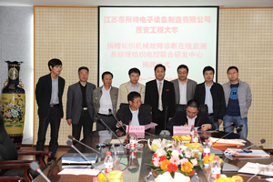 值西安工程大学办学 100 周年校庆之际,我公司提供的 纺织机械故障诊断测试仪器捐赠仪式以及由双方合作的纺织电控联合研发中心揭牌仪式,于 10 月 16 日 在西安工程大学金花校区安东尼会议室隆重举行。