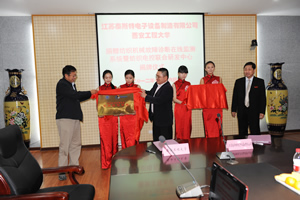 我公司董事长施杰、西安工程大学校长高勇、副校长黄翔、校长助理李鹏飞以及科技处、宣传部、电子信息学院的相关人员参加了揭牌仪式,仪式由电子信息学院院长黄新波主持。 |