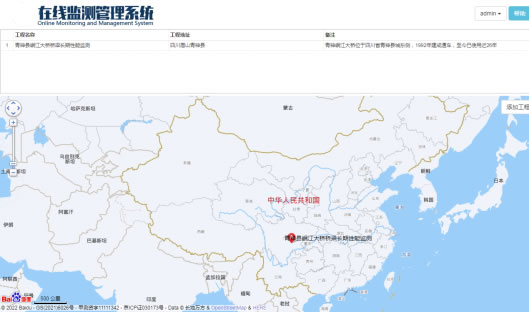 登录成功显示工程信息总览页面,用户可以清晰地看到工程名称、地址及备注等信息,能简易地在地图上找到工程所在。