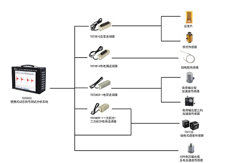 TZT5933动态信号测试分析系统集触摸显示屏、多通道采集卡、嵌入式计算机、大容量电子硬盘、锂电池组等硬件配置于一体,内置数据采集、分析与存储功能的软件,能独立完成各种测试任务,非常适合各种工程现场测试的需要。