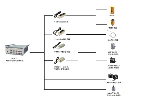 TZT5912为通用型动态信号测试分析系统,应用范围广,可完成应力应变、振动(加速度、速度、位移)、冲击、声学、温度(各种类型热电偶、铂电阻)、压力、流量、力、扭矩、电压、电流等各种物理量的测试和分析。