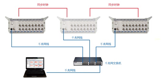 数据采集系统与计算机通过千兆以太网或者USB3.0通讯,通过网络技术,可实现无限多通道扩展并行采样,实时进行信号采集、储存、显示和分析等。