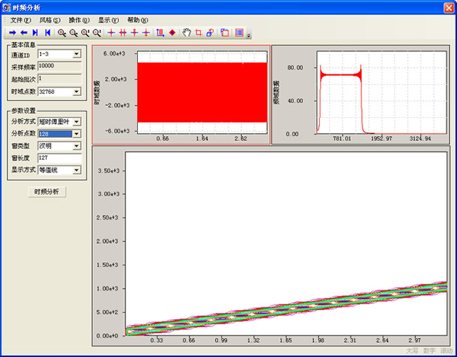 通过设计时间和频率的联合函数,用来同时描述信号在不同时间和频率的能量密度或强度。时间和频率的这种联合函数简称为时频分布。利用时频分布来分析信号,能给出各个时刻的顺势频率及其幅值,并且能够进行时频滤波和时变信号研究。软件支持短时傅里叶变化、伪 WV 分布、 Page 分布等多种时频分析方法。